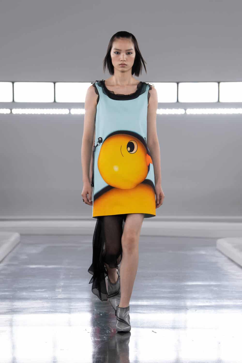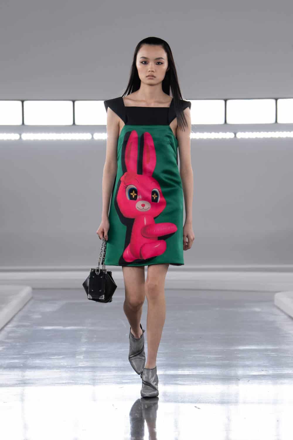 ニコラ・ジェスキエールは、ルイ・ヴィトンが初めて中国で行うショーのために上海の龍美術館西岸館(ロン・ミュージアム・ウエストバンド)に向かった。打ちっぱなしのコンクリートの大聖堂のような館内を舞台に、中国の若手アーティスト、スン・イーティアン(Sun Yitian)とのコラボレーションによる24年プレフォールウィメンズ・コレクションがスタート。パンダやウサギ、アヒル(大量生産と “メイド・イン・チャイナ “への内省が込められている)など、漫画のような動物たちのイラストがワンピースやコート、バッグ、ミニスカートを飾った。それらはデザイナーの魅力であるレトロフューチャリズムを強調し、遊び心のある(そして非常にコレクション性の高い)方法でショーの幕を開けた。また、ミニスカートやスケータースカートに象徴されるルックがルイ・ヴィトンの特長ともいうべきクラフトマンシップと融合し、若々しく華や可な雰囲気でオーディエンスを魅了した。
