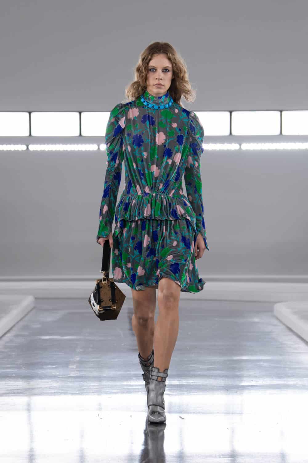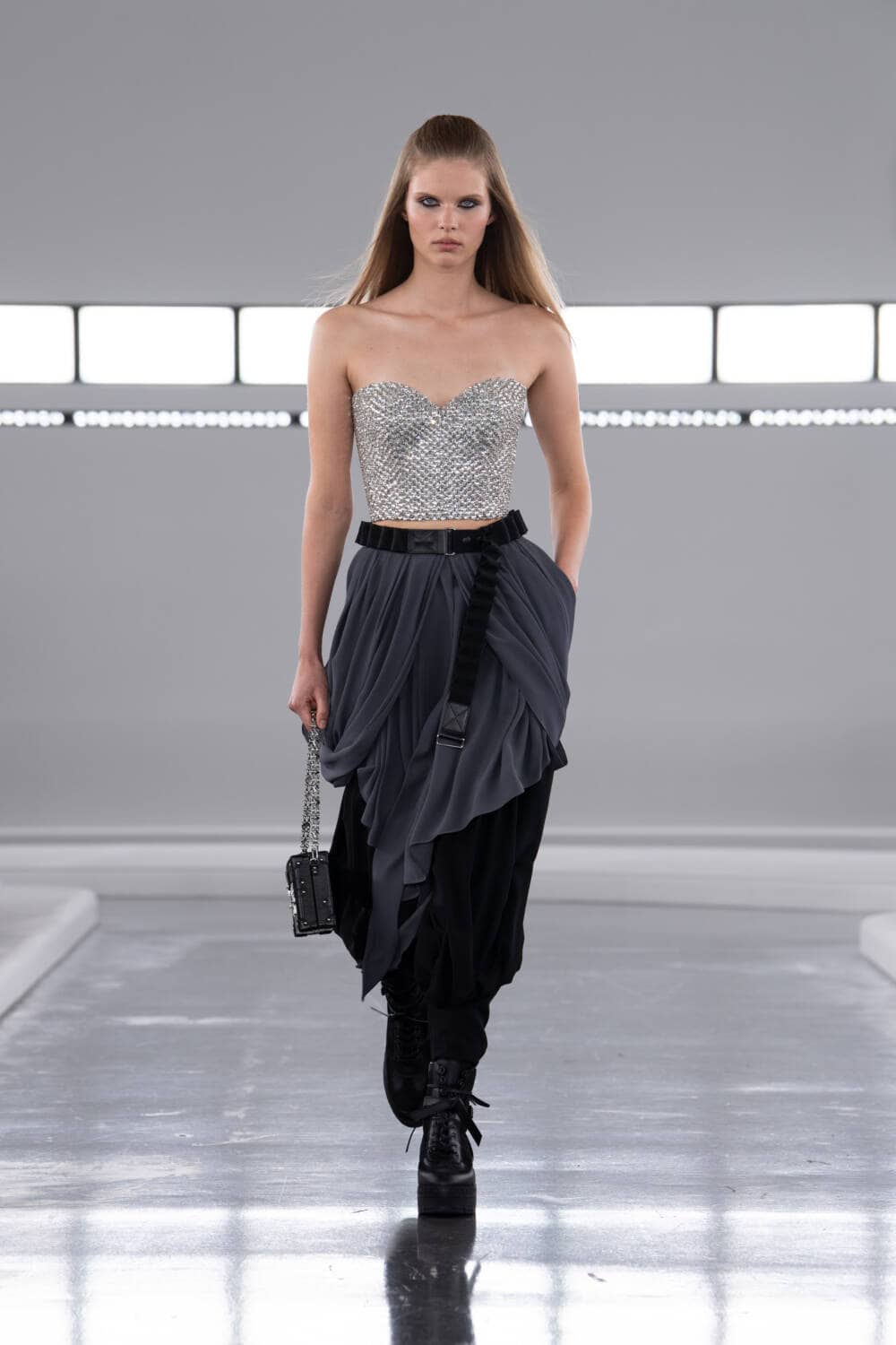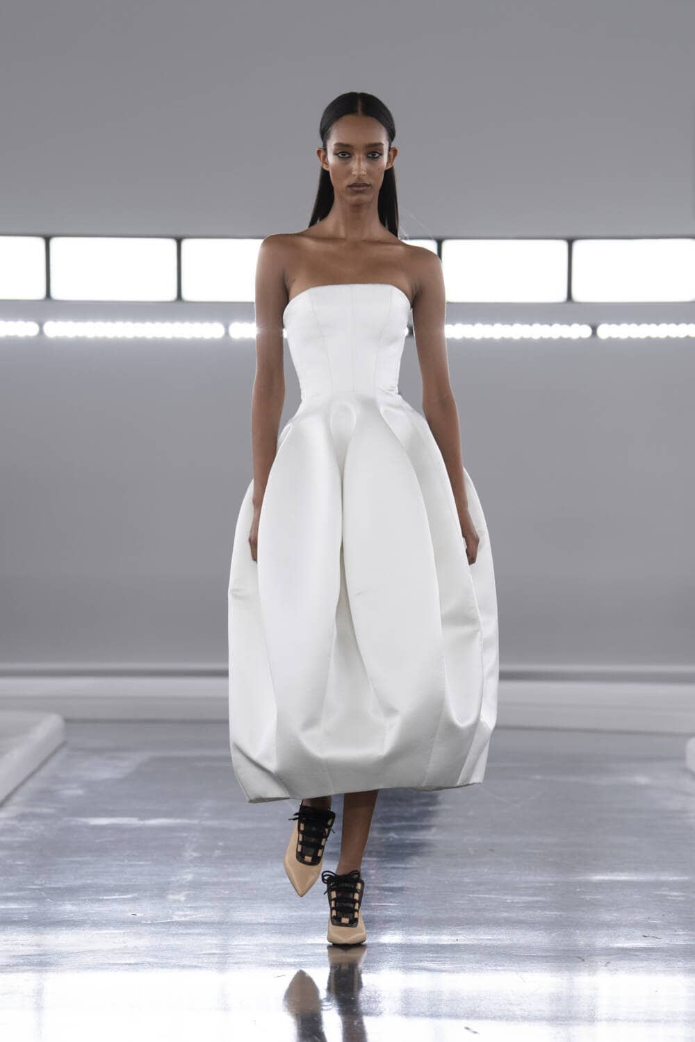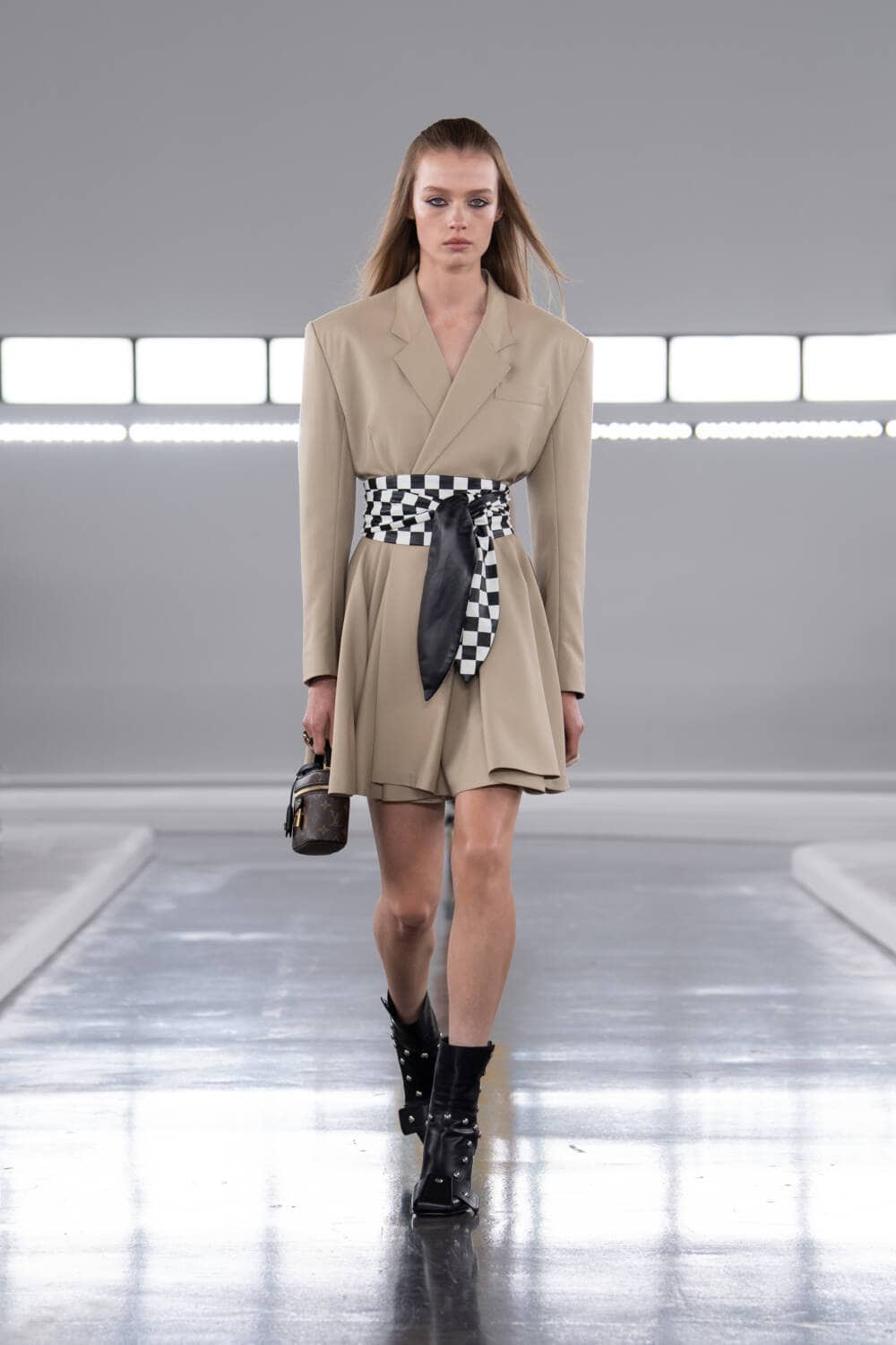 ワークウェアやデニムのスケーターショーツにきらびやかな花柄の刺繍が贅沢に施されるいっぽう、いかにも丈夫そうなフロントポケット仕様のバイカーベストには、ルイ・ヴィトンの洗練されたレザーが使用された。アーティスティックにシュレッドされたシフォンのマキシスカートからは、モデルの脚が大胆に露出。モデルの動きに合わせてより美しく見えるこれらのルックは、厚底シューズとのコーディネートによって、活動的な女性たちためのルックであることを強調した。美しいサテンボールガウンのバブルスカートでショーを締めくくったジェスキエールは、コレクションに建築的なドラマをもたらすことに成功した。ファッション界の”シルエットの帝王”と称されるジェスキエールから、これ以上何を望めと言うのか、と思えるほど見事なショーだった。
