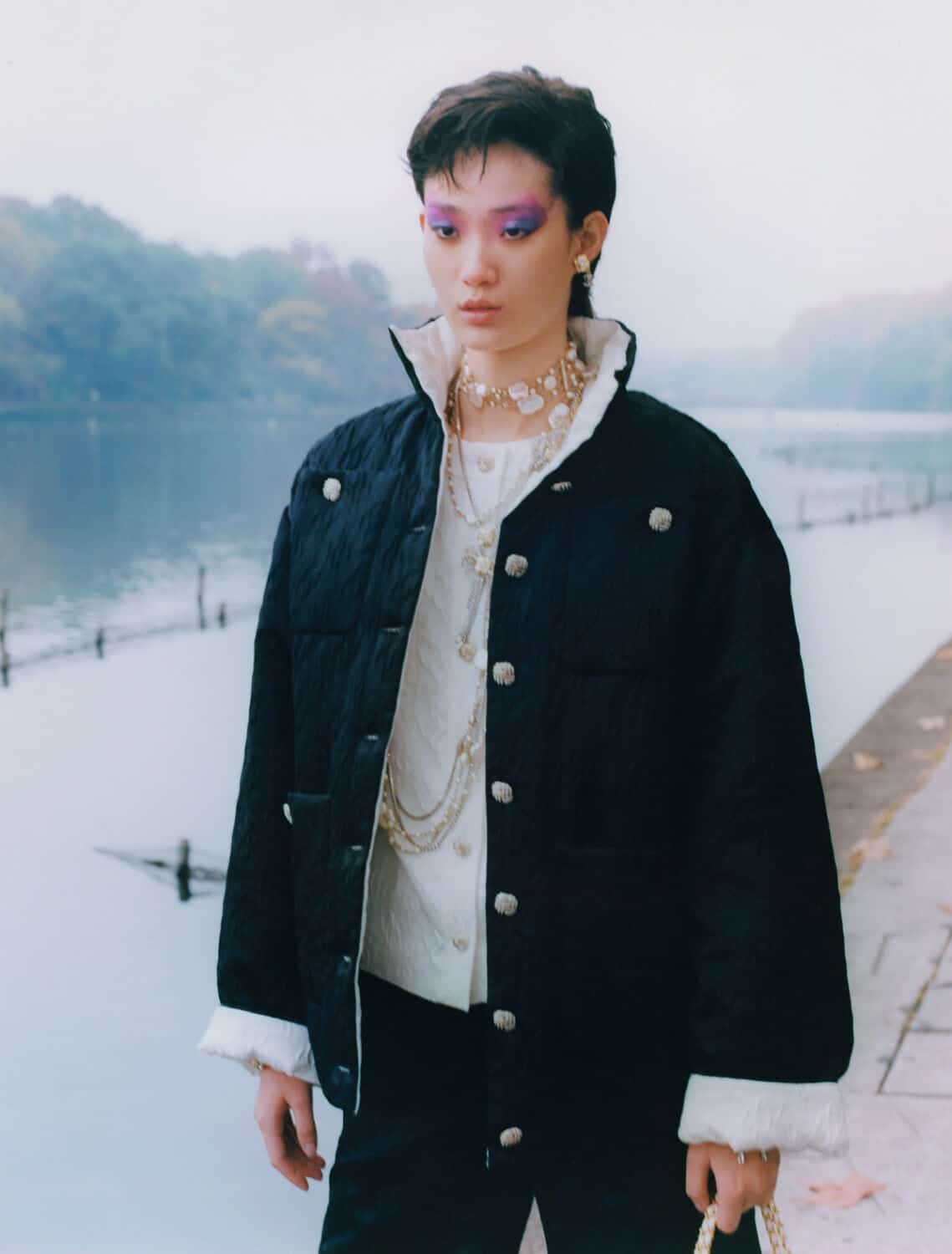1980年代のアイコンであり、カントポップの歌姫アニタ・ムイ。「東洋のマドンナ」と称された彼女にインスパイアされたモデルのヒョンジ・シンが、シャネルの2024/25年メティエダール コレクションを纏い、杭州の街に優雅に舞い降りる。