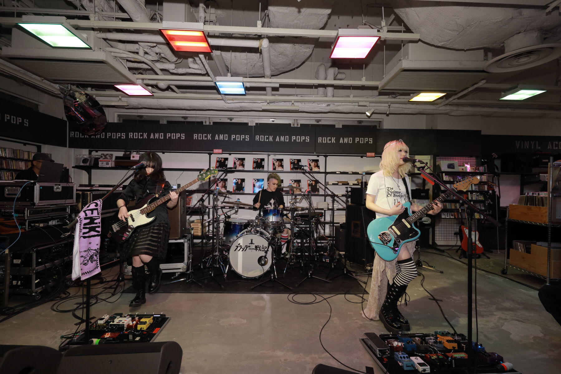 DJブースでは、本誌の企画にも登場したLicaxxxが、オールヴァイナルでクールかつ洗練された選曲を披露。アナログならではの温かみのある音が空間を包み込み、会場の熱気をさらに高めた。さらに、唯一無二のフレッシュなエネルギーを放つスリーピースバンド、ブランデー戦記がスペシャルパフォーマンスを披露。力強いサウンドと躍動感あふれるステージングで観客を魅了し、会場のボルテージは最高潮に達した。音楽とファッションが交差する一夜限りの夢のような時間に、集まった観客たちは酔いしれた。