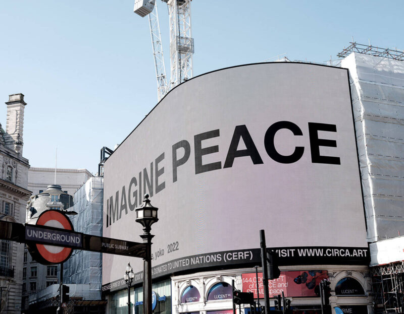「私たちは、公共の場でアート作品を目にするとは思っていません。だからこそ、帰宅途中や通勤中にアートと出会うことに大きな衝撃を受けるのです」。シェリックスも、こうした商業スペースを使うことは「世界を変えるには美術館もギャラリーも出版社も必要ない、というオノの初期の信念を発信することでもある」と指摘する。確かに、資本主義の象徴ともいうべきタイムズスクエアのような場所で「平和な世界を想像してごらん」と訴えるのは、ディスラプティブな行為である。資本主義の本質は現状を維持することであり、それ以外のことを想像する余地を許さないのだから。